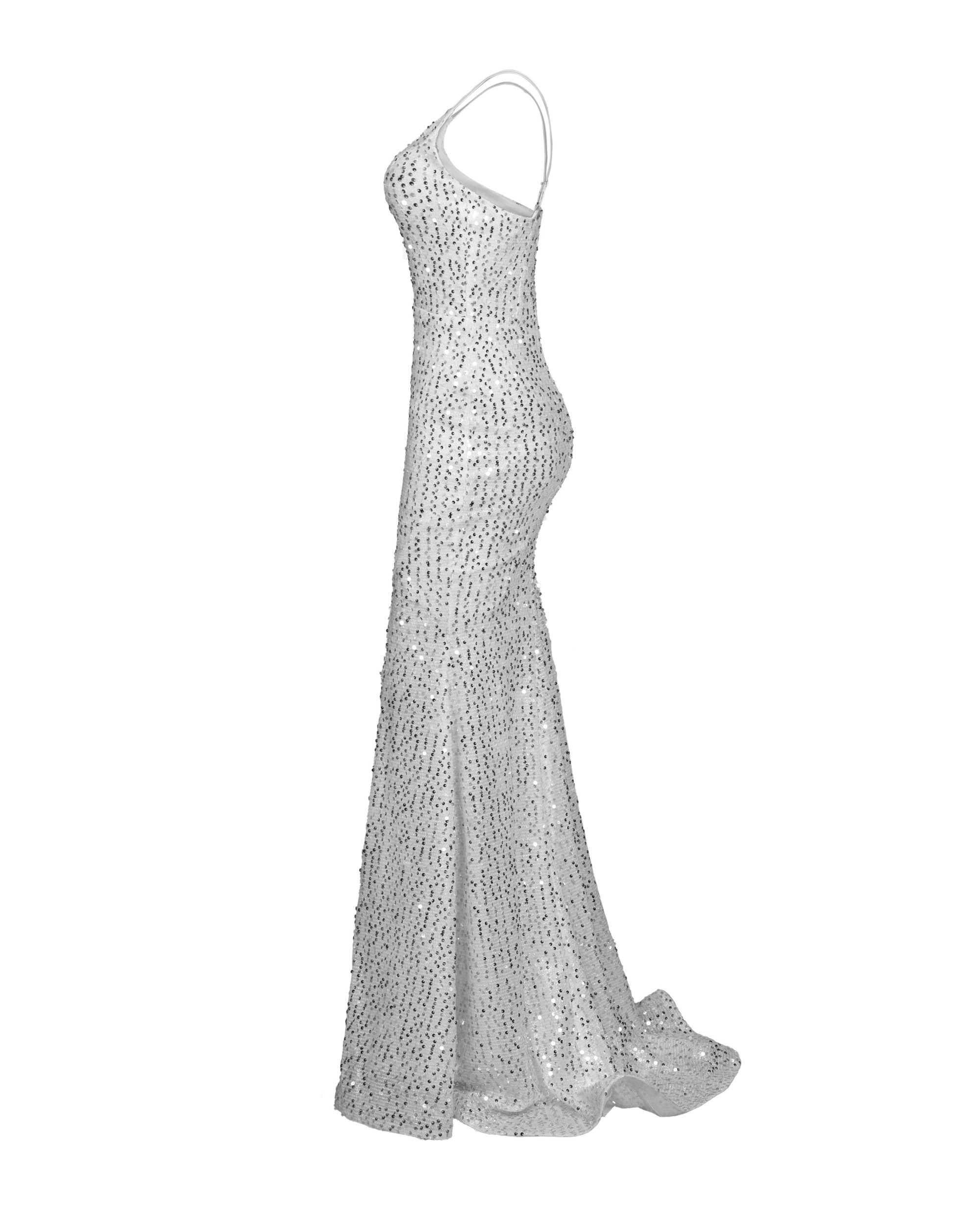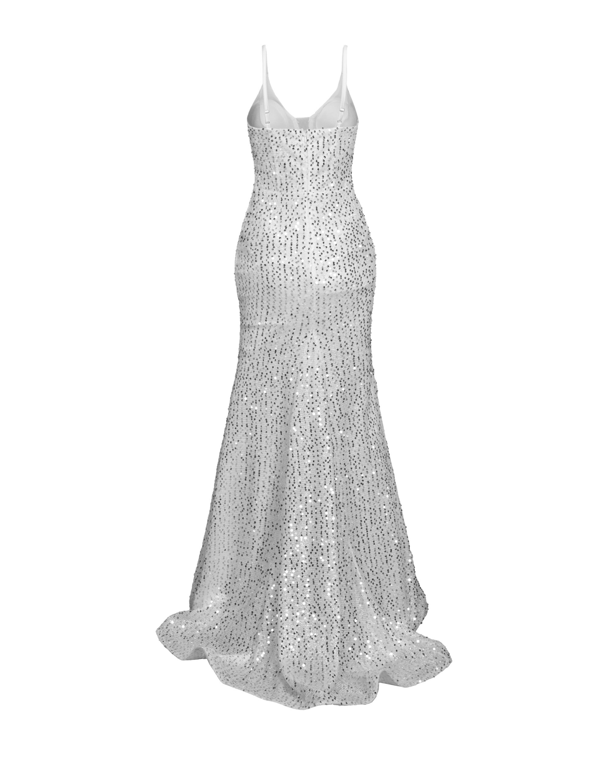 پیراهن ماکسی پولکی مجلسی سفید