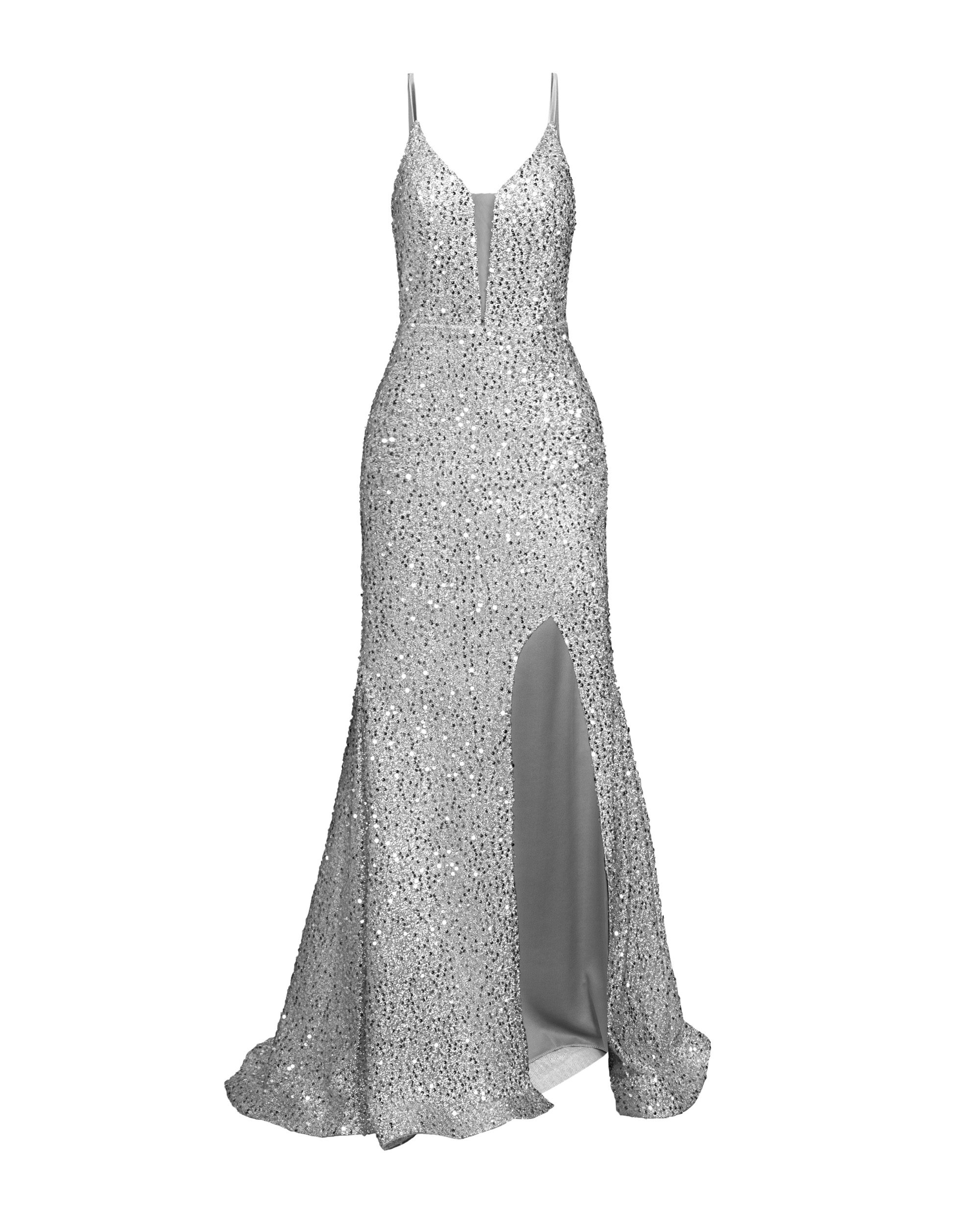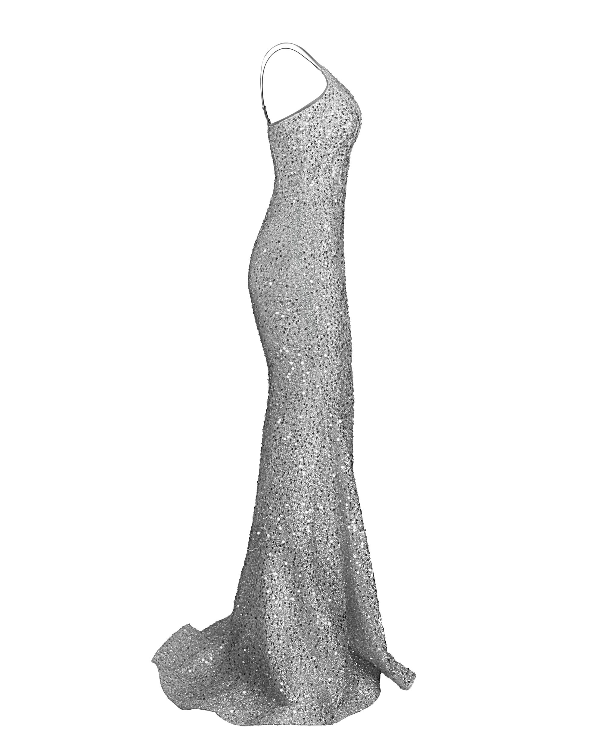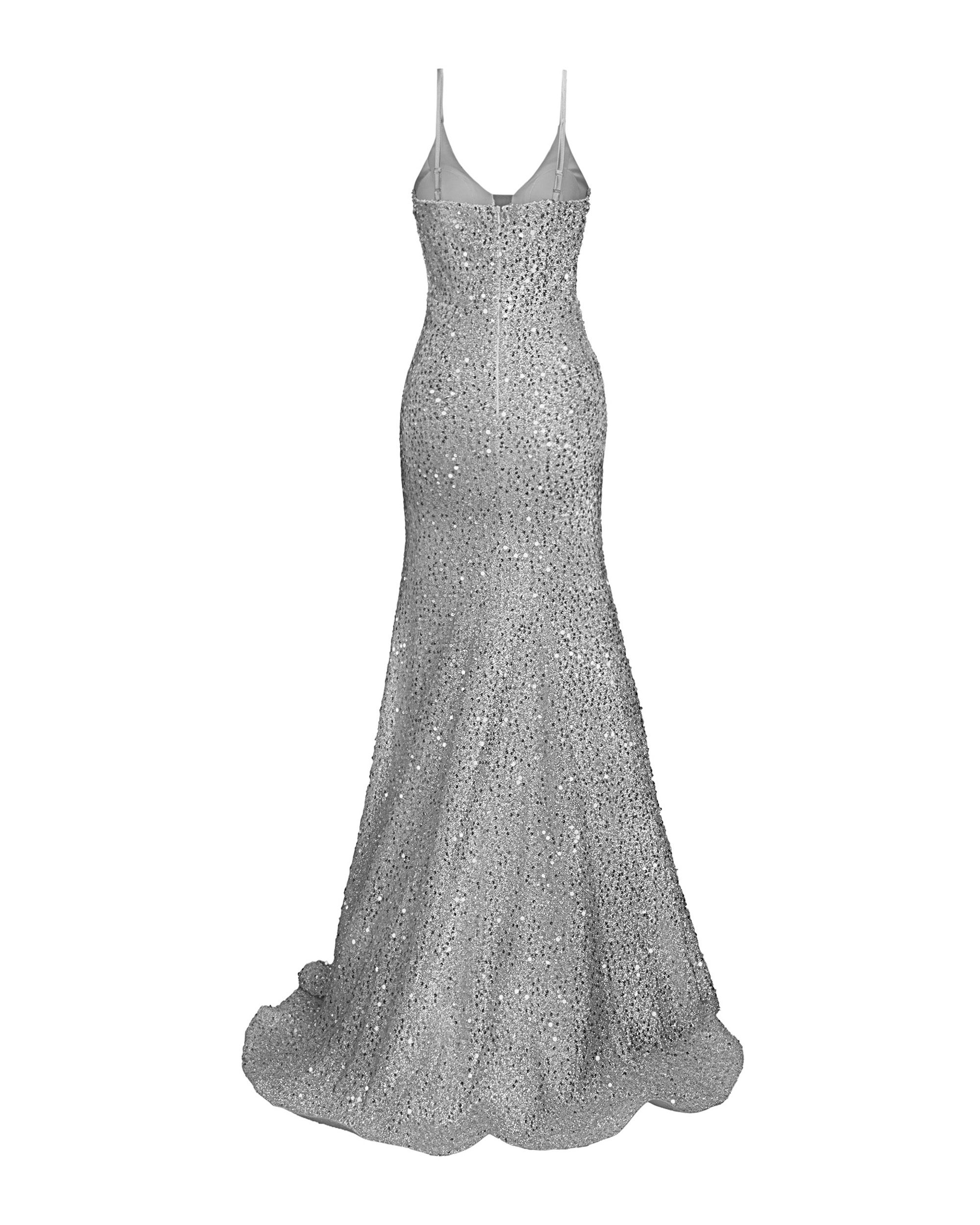 پیراهن ماکسی پولکی مجلسی نقره ای