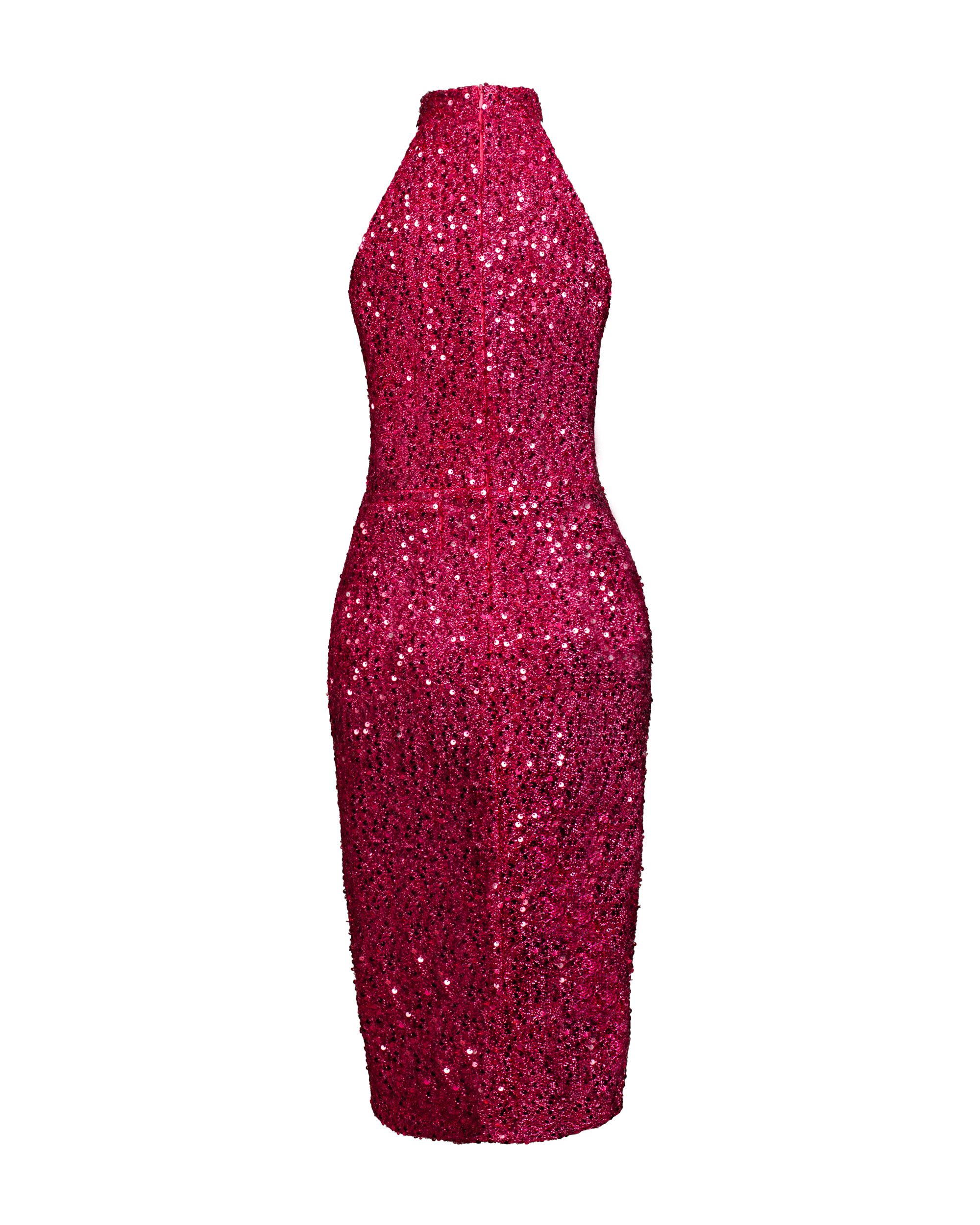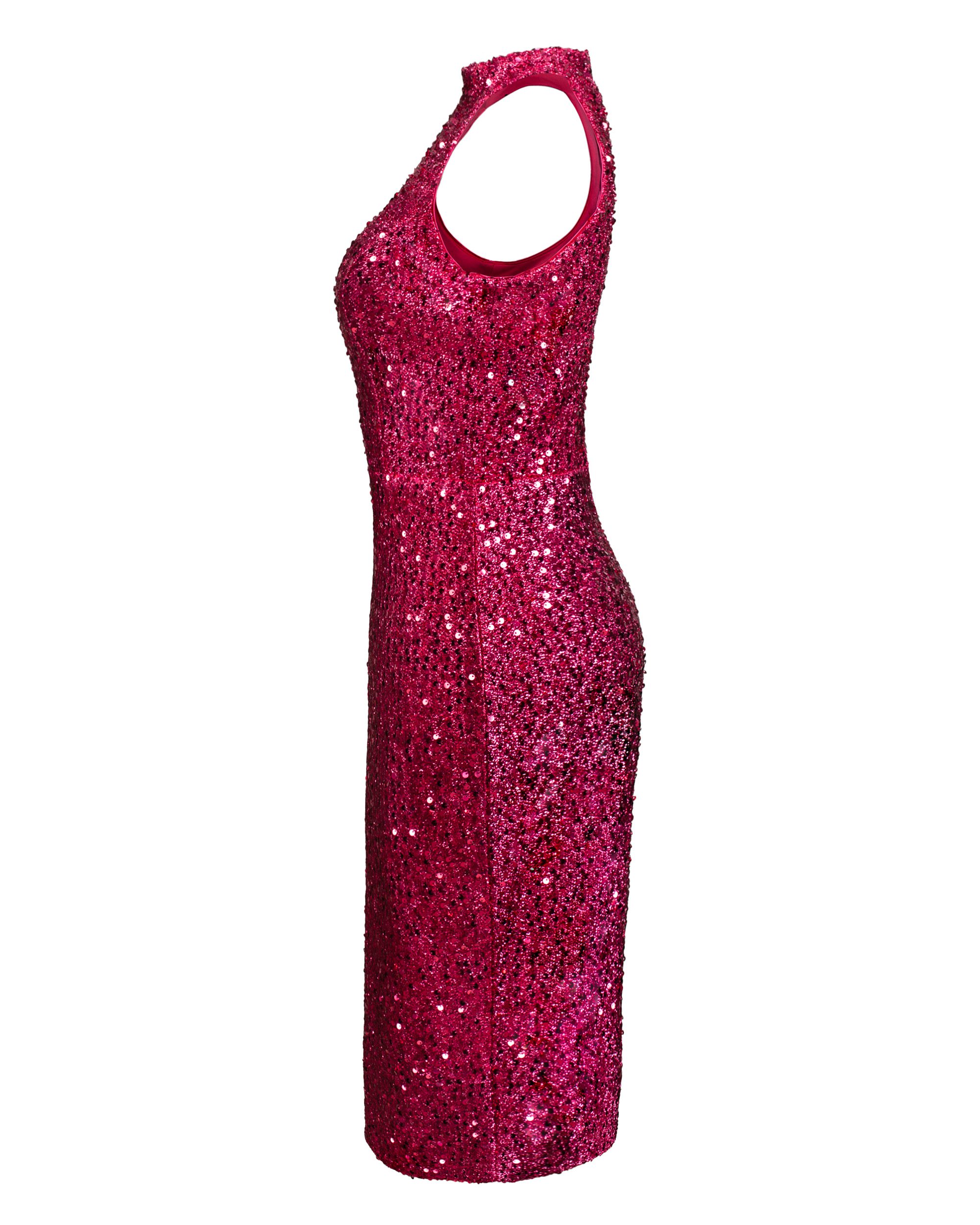 پیراهن کوتاه پولکی آف شولدر سرخابی